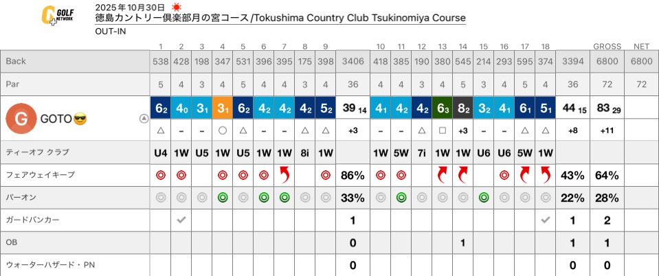 8時スタートで寒かったものの、9時くらいからは半袖でプレー。