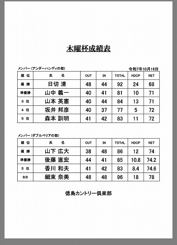ホームコースである徳島月の宮カントリーの木曜杯に行って来ました。